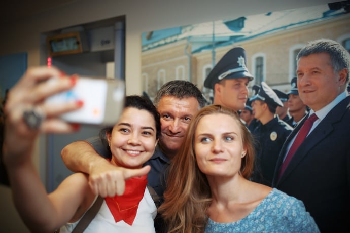 Аваков напускает серьезный вид, давая понять, что времени у него мало и вступительная часть встречи окончена. И вообще, девочки, вы у министра, на минуточку внутренних дел, – не забывайтесь.