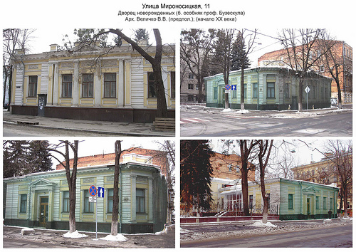 Здание на Мироносицкой, 11, помимо исторической ценности, является также одним из замечательных памятников архитектуры конца XIX века. Видный харьковский зодчий В.Величко выполнил особняк в стиле неоренессанса. Несколько просторных залов внутри, некогда изысканный двор – с садом, беседкой, фонтаном – все это еще недавно могли наблюдать граждане, регистрировавшие детей во Дворце новорожденных. Увы, дом Бузескула тоже ожидает печальная участь превратиться в развалину, после чего на его месте построят новые апартаменты.