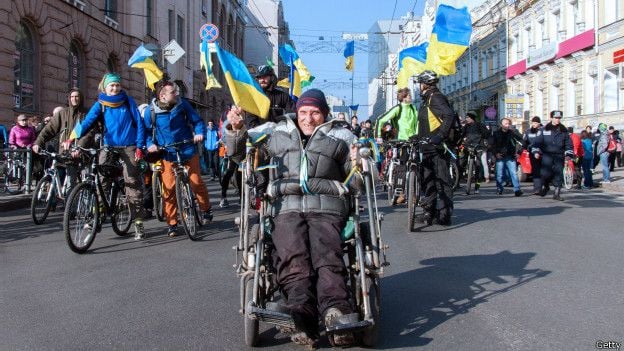 А тамтешній Євромайдан провів "мітинг перемоги" лише у червні минулого року, після того, як Україна підписала Угоду про асоціацію з Європейським Союзом, каже координатор активістів Володимир Чистілін.