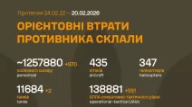 Загальні бойові втрати противника з 24 лютого 2022 року по 20 лютого 2026 року орієнтовно склали близько 1 257 880...