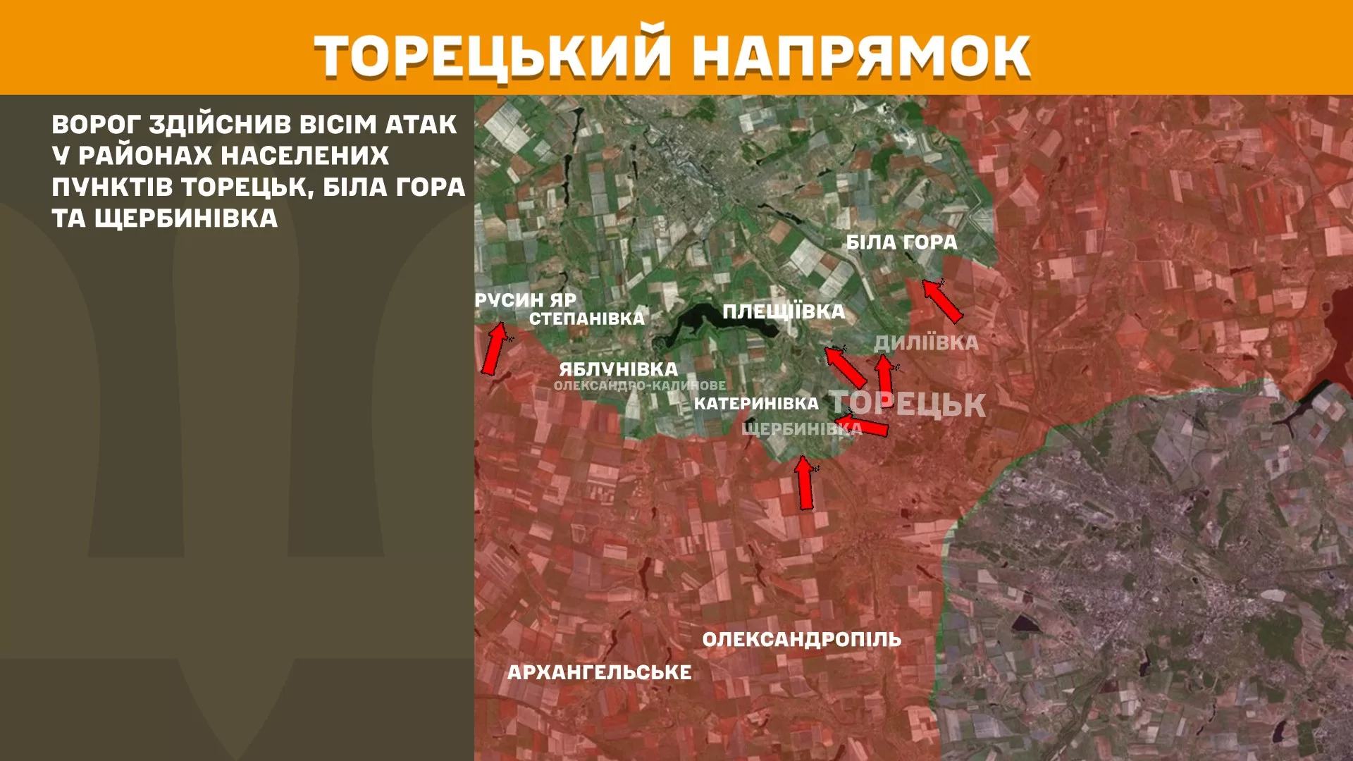In the Toretsk sector, the enemy launched eight attacks in the areas of Toretsk, Bila Hora, and Shcherbynivka.