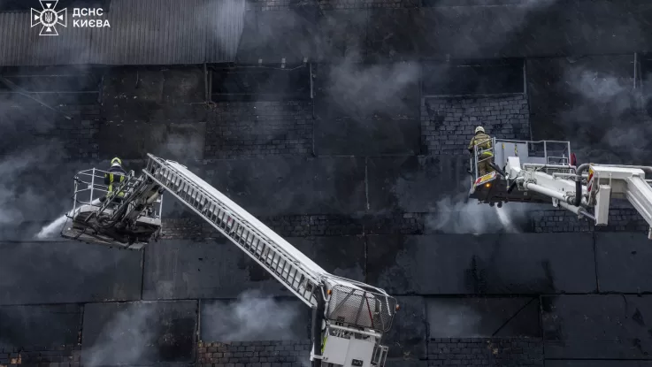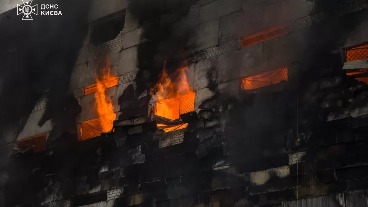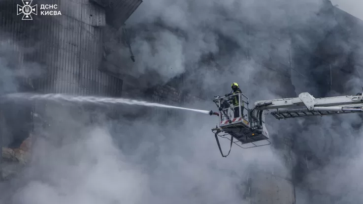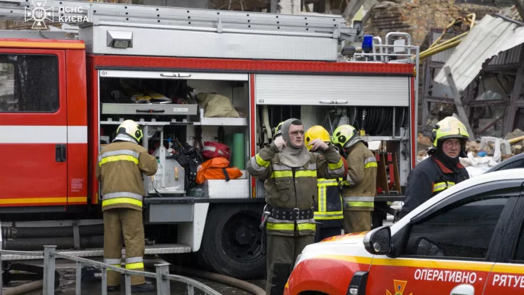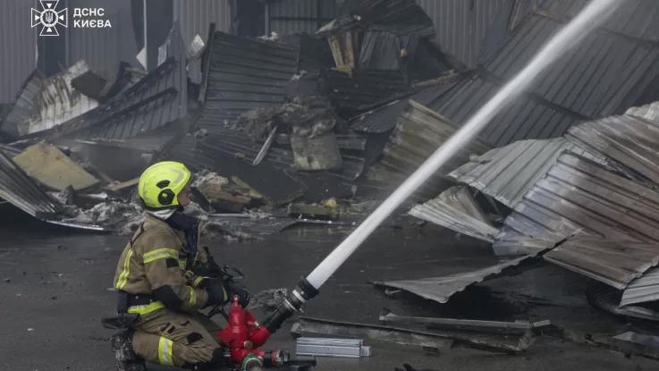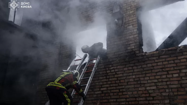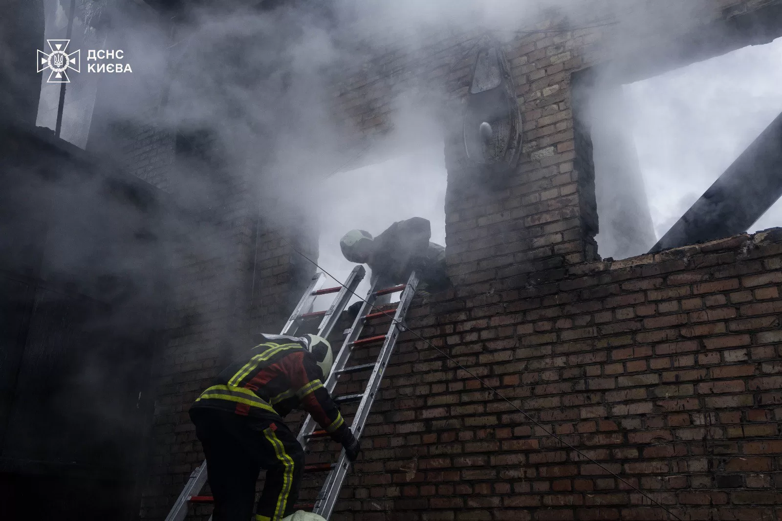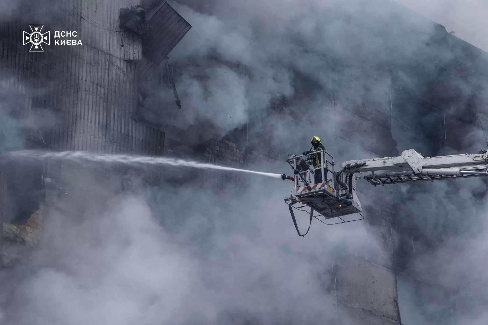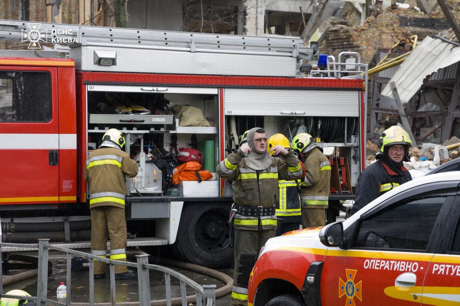 Rescuers continue to extinguish fires and clear debris after another Russian shelling of the capital, according to the State Emergency Service.