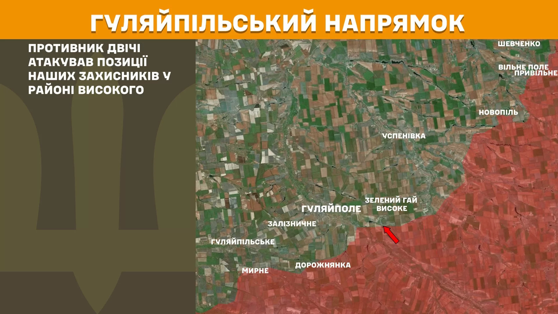 The enemy twice attacked the positions of Ukrainian defenders in the Vysokyi area in the Huliaipilska direction.