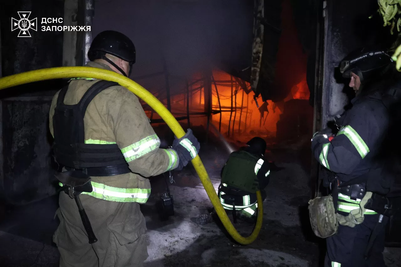 In Zaporizhzhia region, strikes on the district and the city of Zaporizhzhia injured a 90-year-old woman. A residential building and outbuildings were destroyed. In the city itself, a large fire broke out at a private enterprise covering 600 sq. m, while another 400 sq. m burned in other settlements in the district. A total of 92 rescuers and 20 units of equipment were involved in tackling the aftermath.