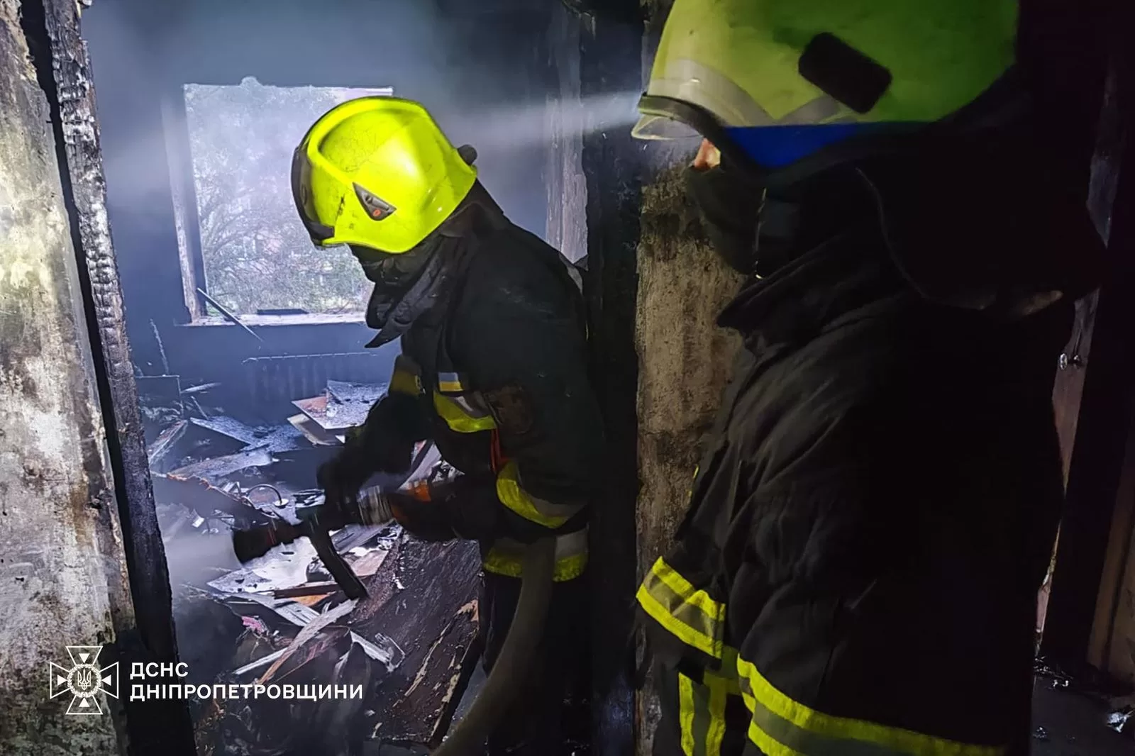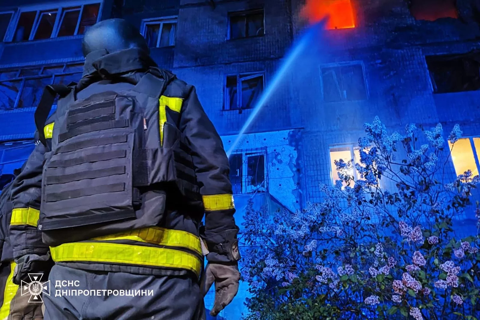 The strike caused a fire in a nine-storey residential building. Firefighters extinguished the blaze, which covered an area of 65 square metres.