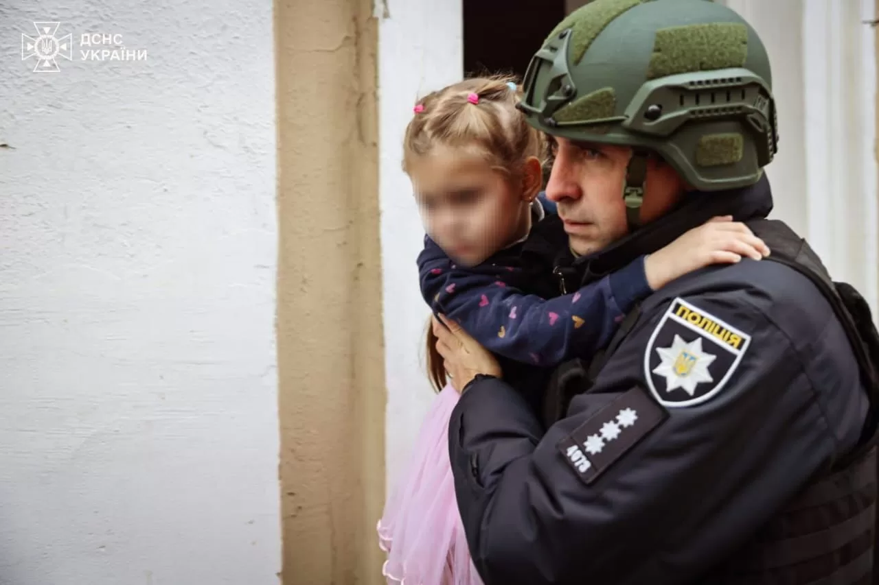 The State Emergency Service has released photos of the evacuation of children from a nursery school in Kharkiv after the arrival of the missile.