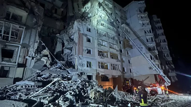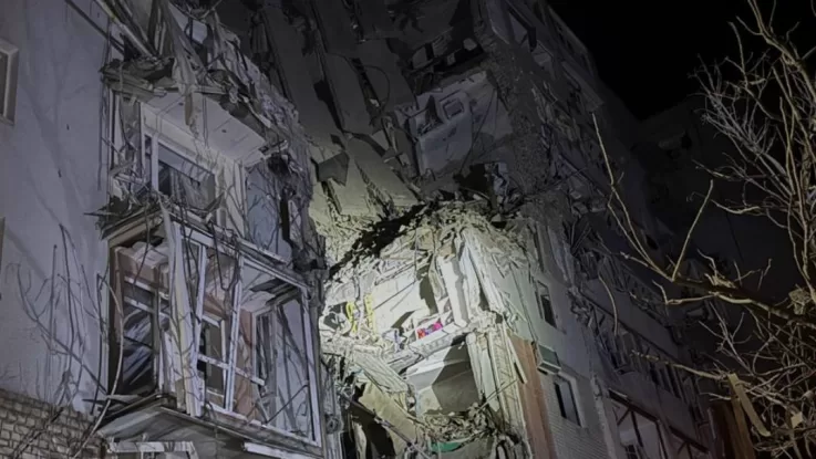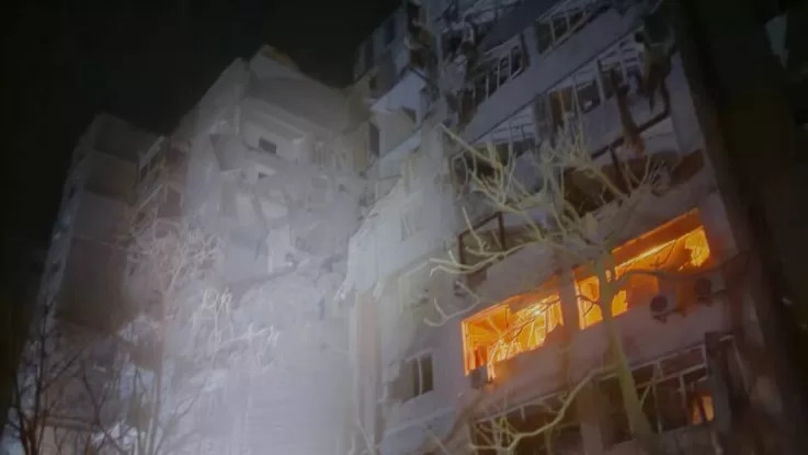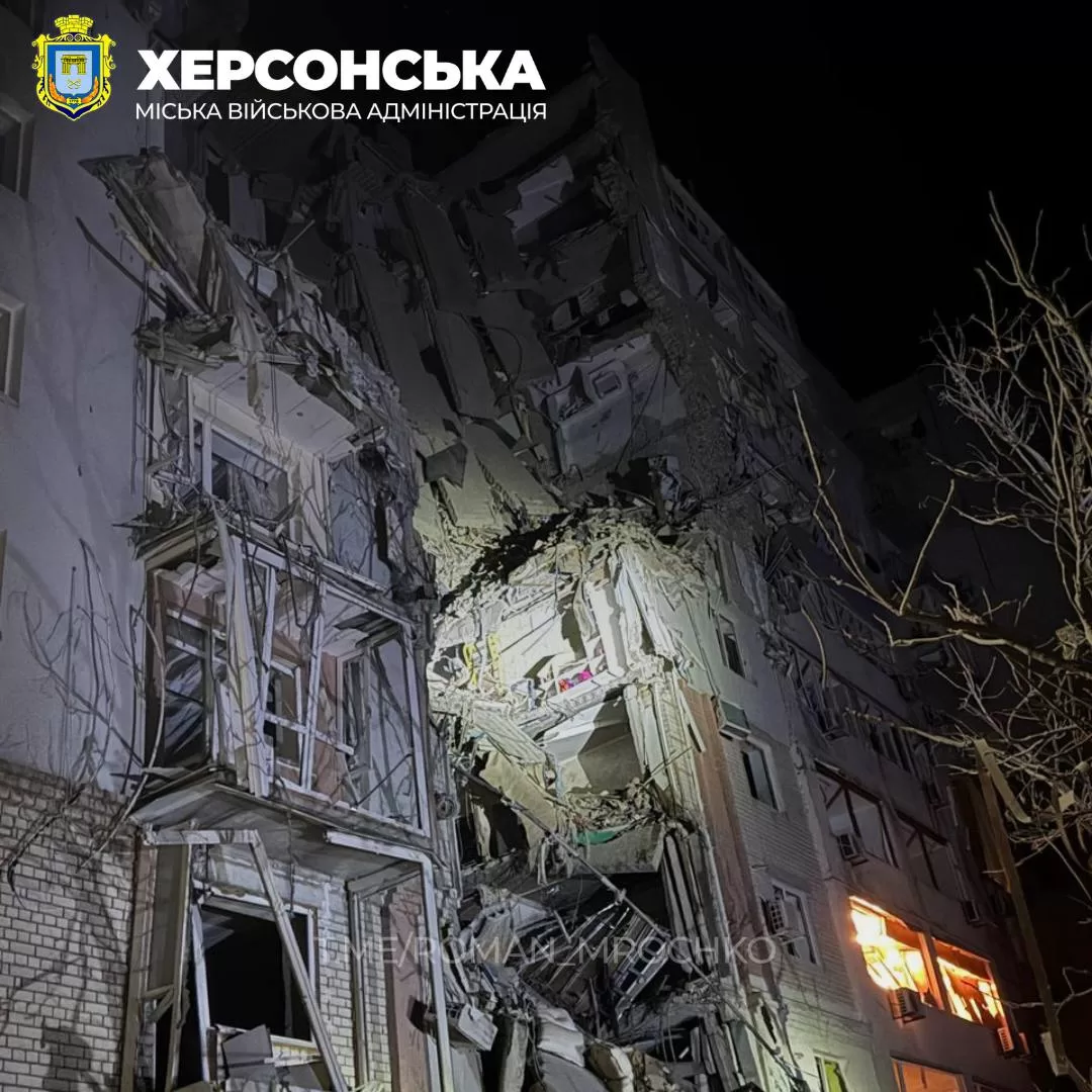 On the night of February 20, the Russian army attacked Kherson with guided aerial bombs. One of them hit a high-rise building in the Dniprovsky district.