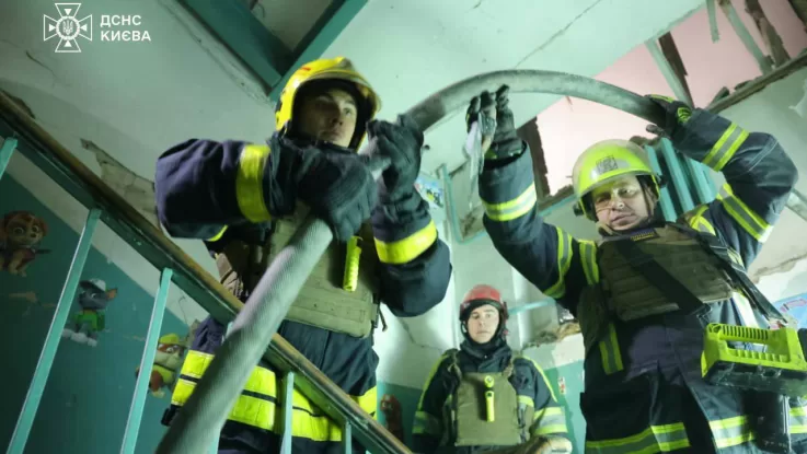In the Dniprovskyi district, a strike on a 10-storey residential building caused the collapse of the sixth and seventh floors. The fire was extinguished and three people, including a person with limited mobility, were rescued from the seventh floor. Work to clear the damaged structures continues. The information is being updated.