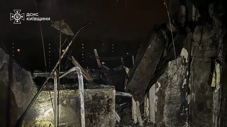 Private homes and parked vehicles in Brovary were also damaged. A fire in a garage cooperative was extinguished, with twenty garages reported damaged. All emergency services are working at the scene.