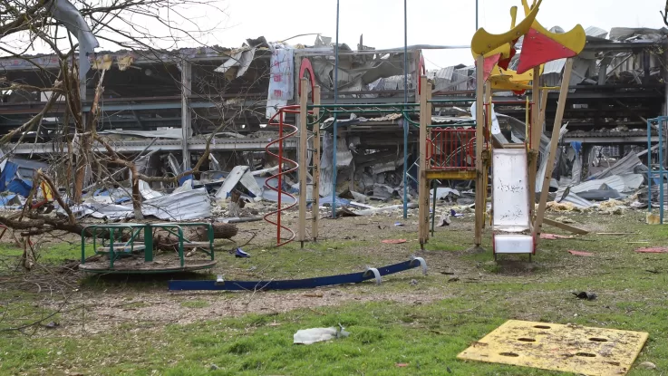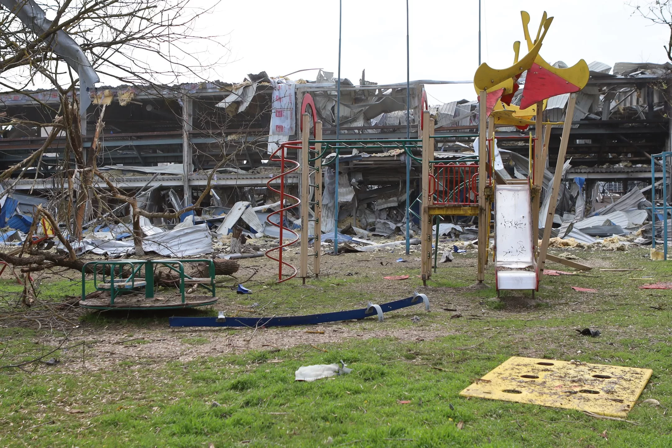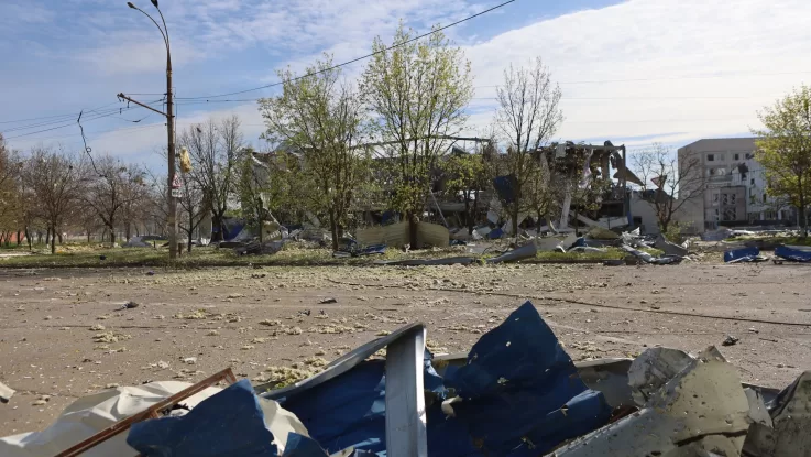 On the morning of 16 April, Russian troops attacked the central district of Kherson with guided aerial bombs and completely destroyed the Favorit Arena ice rink.