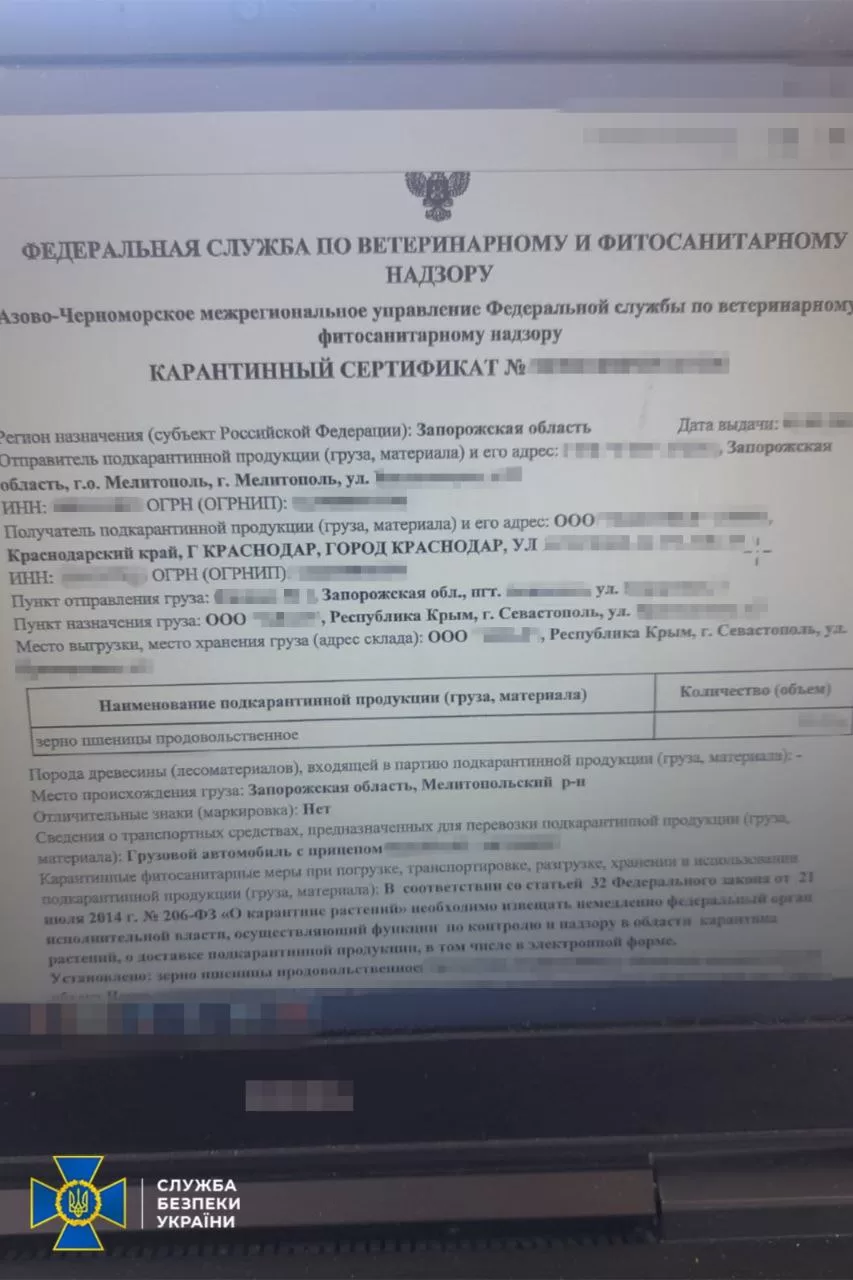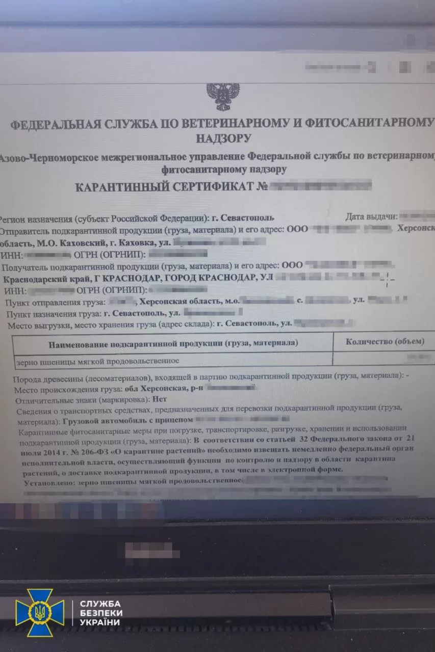 A search of the vessel revealed documents, navigational equipment and other material evidence confirming the vessel’s involvement in the illegal transport of Ukrainian grain.