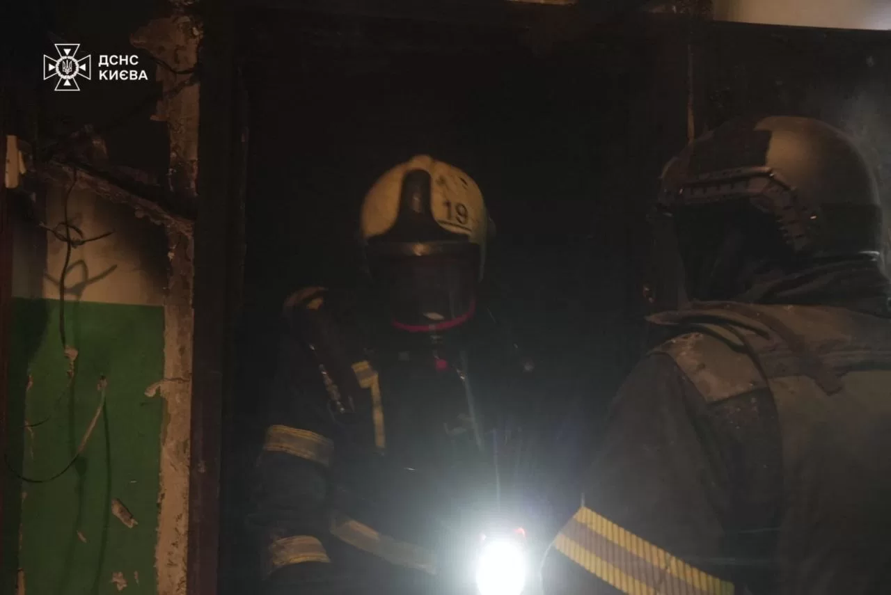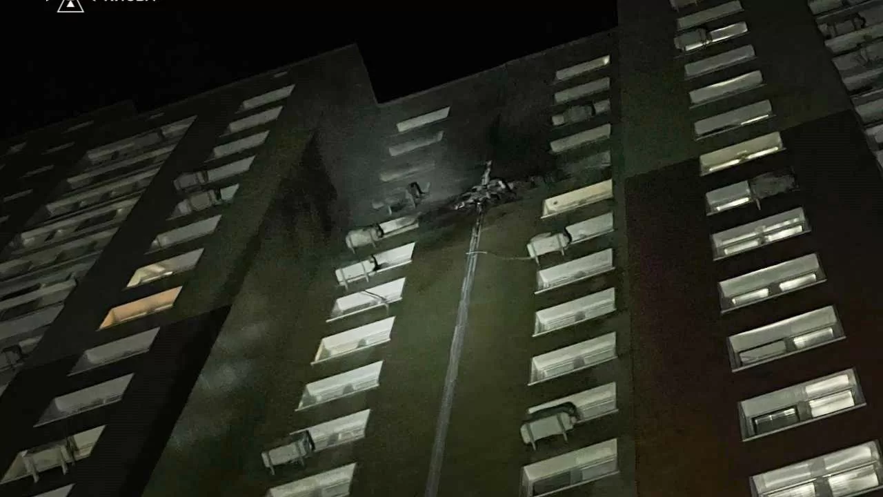 A fire of 100 square metres on the upper floors of a 9-storey building with spread to the roof has been extinguished in the Dniprovsky district. A woman died. 27 people were evacuated from the building.