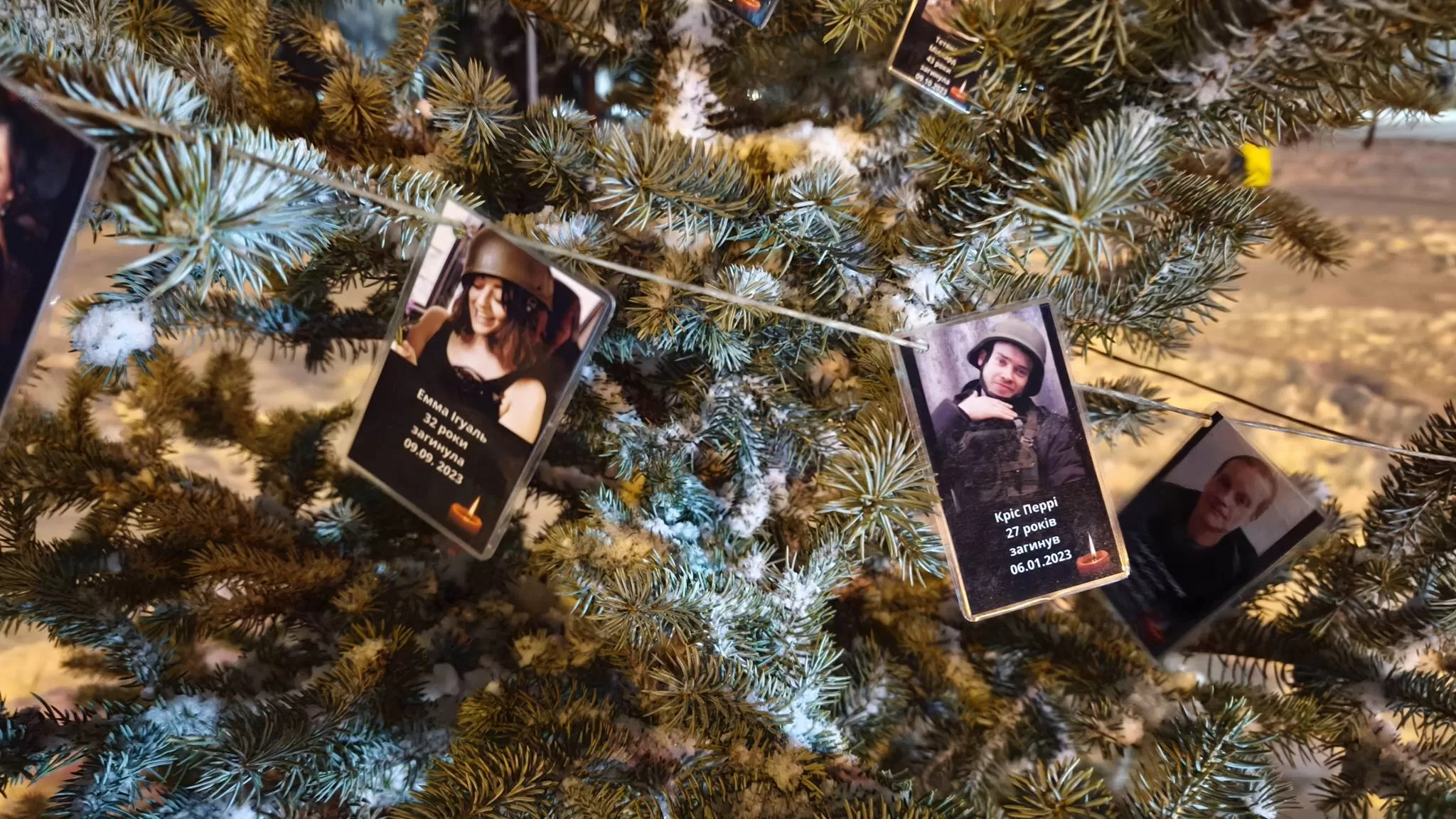 Volunteers have planted a Christmas tree in the centre of Kramatorsk in Donetsk Oblast. The New Year tree is decorated with photos of volunteers who died while evacuating people from hot spots.