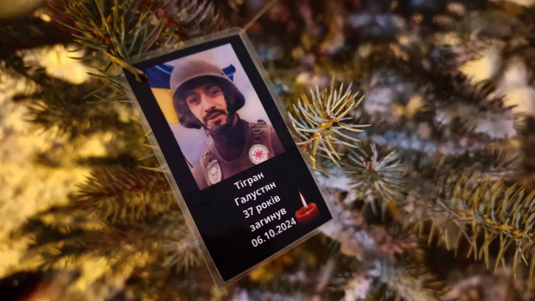 ‘This is not a festive flash mob. Instead of toys, there are photos of deceased volunteers who were involved in evacuations in hot spots in Donetsk Oblast until the very end and died without seeing this New Year with their families and a Christmas tree,’ Kachura wrote.