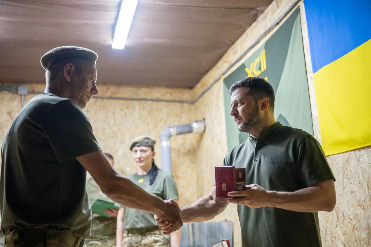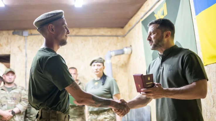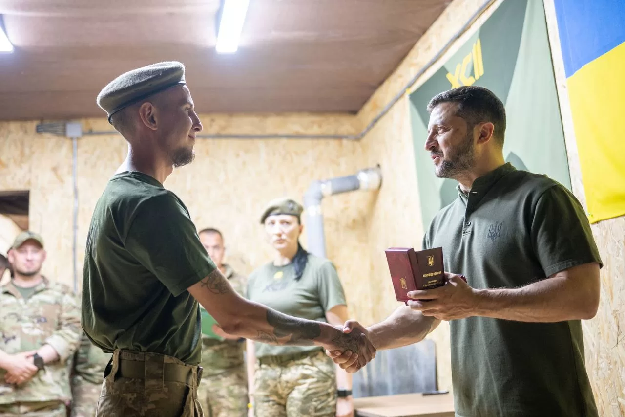 Today, August 4, President of Ukraine Volodymyr Zelenskyy met with soldiers of the 92nd separate assault brigade named after Ivan Sirko, who hold a section of the front near the village of Lyptsy in the Kharkiv region.