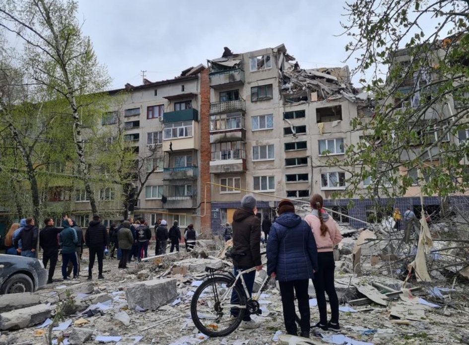 Слов’янськ Донецької області 14 квітня потрапив під потужний російський обстріл. Через це зруйновано декілька поверхів однієї з багатоповерхівок, є руйнування інших будівель.