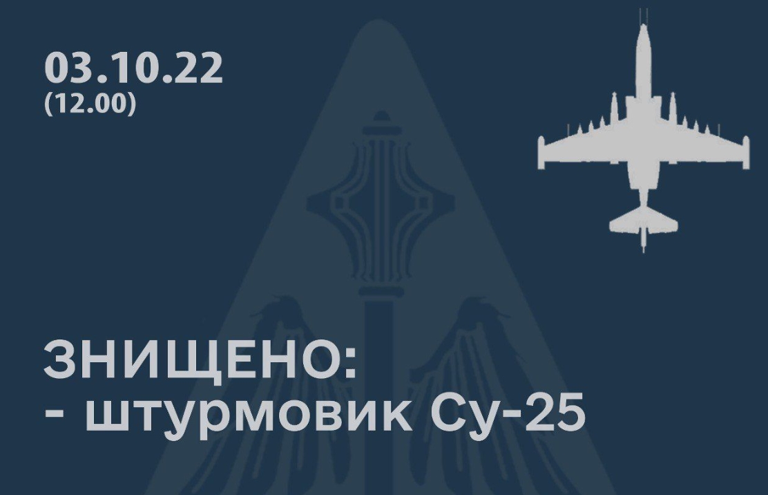 “3 жовтня, опівдні, в Бериславському районі Херсонщини, підрозділом Херсонської зенітної ракетної бригади Повітряне командування “Південь” збито російських штурмовика Су-25″, – йдеться у повідомлені.