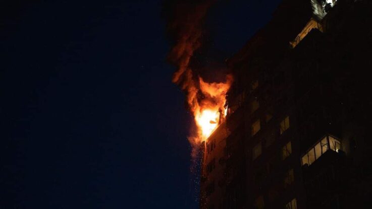 - У Печерському районі від падіння уламків відбулося загорання 3 автомобілів. Пожежу ліквідовано.