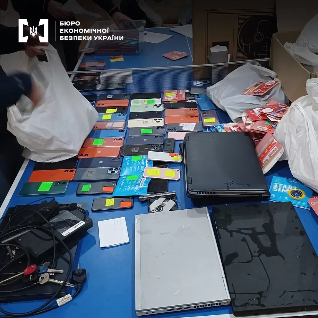 Вилучено близько 400 мобільних пристроїв, 50 одиниць комп’ютерної техніки (ноутбуки та стаціонарні комп’ютери), орієнтовно 5 тисяч сім-карт мобільних операторів, 500 банківських карток фізичних осіб дропів, заяви на відкриття банківських рахунків від фізичних осіб тощо.