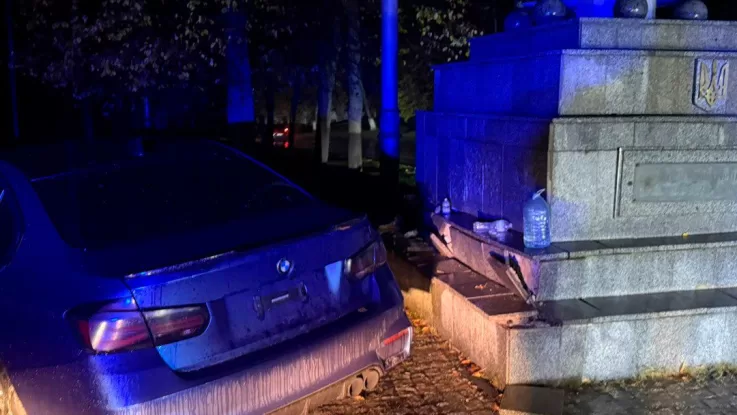 Як повідомили правоохоронці, водій BMW не вибрав безпечної швидкості руху та здійснив наїзд на стелу пам’ятника (мова йде про стелу з прапором України на пр-ті Незалежності).