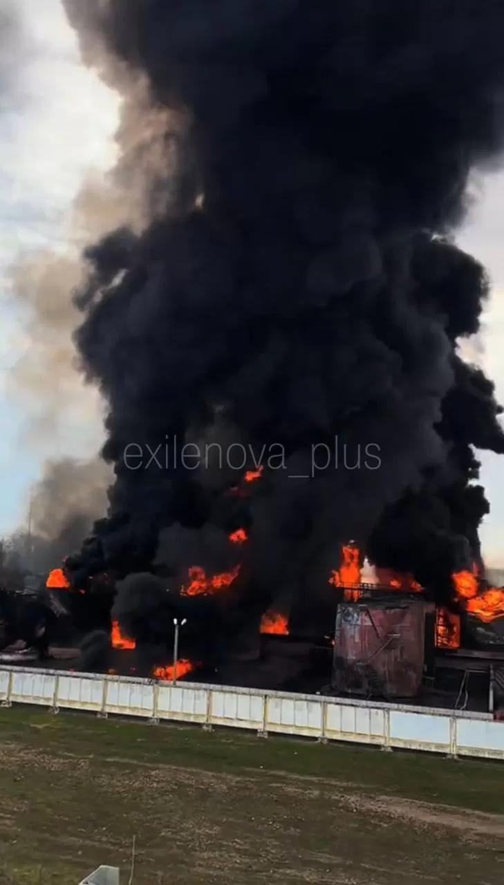 За даними джерел проєкту Astra в екстрених службах, під час атаки чотирьох українських дронів загорілися 18 резервуарів, зокрема дев’ять ємностей із бензином об’ємом по 400 кубометрів і ще дев’ять — із дизельним паливом. Також вогонь знищив сім бензовозів. Загальна площа пожежі становить близько 3 тисяч кв. метрів. Постраждалих немає.