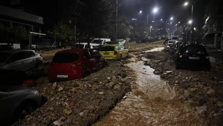 Жінка загинула після того, як на неї наїхав автомобіль, який змило раптовою повінню в південному передмісті Афін Гліфада, повідомив представник пожежної служби.