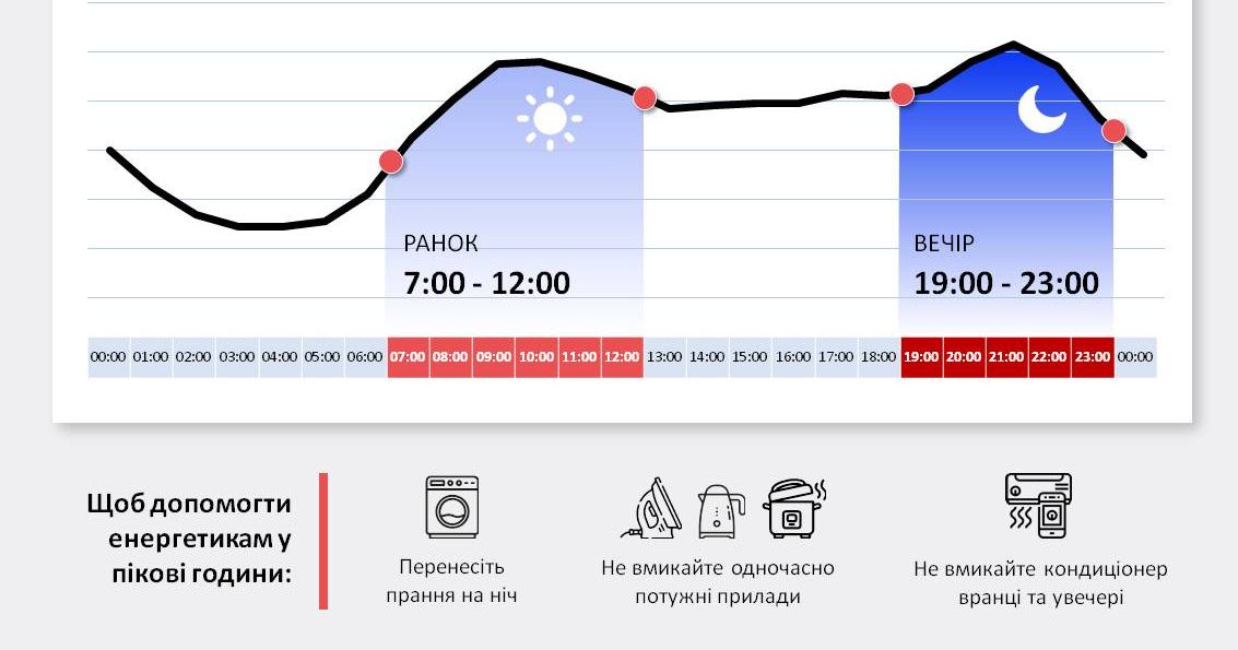 “Допомогти енергосистемі стабільно працювати може кожен з вас, зменшивши своє споживання у вечірні години – з 19.00 до 22.00. Вимкнувши кілька електроприладів або використовуючи їх вдень чи вночі, ви допомагаєте зменшити навантаження на енергосистему та полегшити її балансування”, – йдеться у повідомленні Укренерго в Telegram.