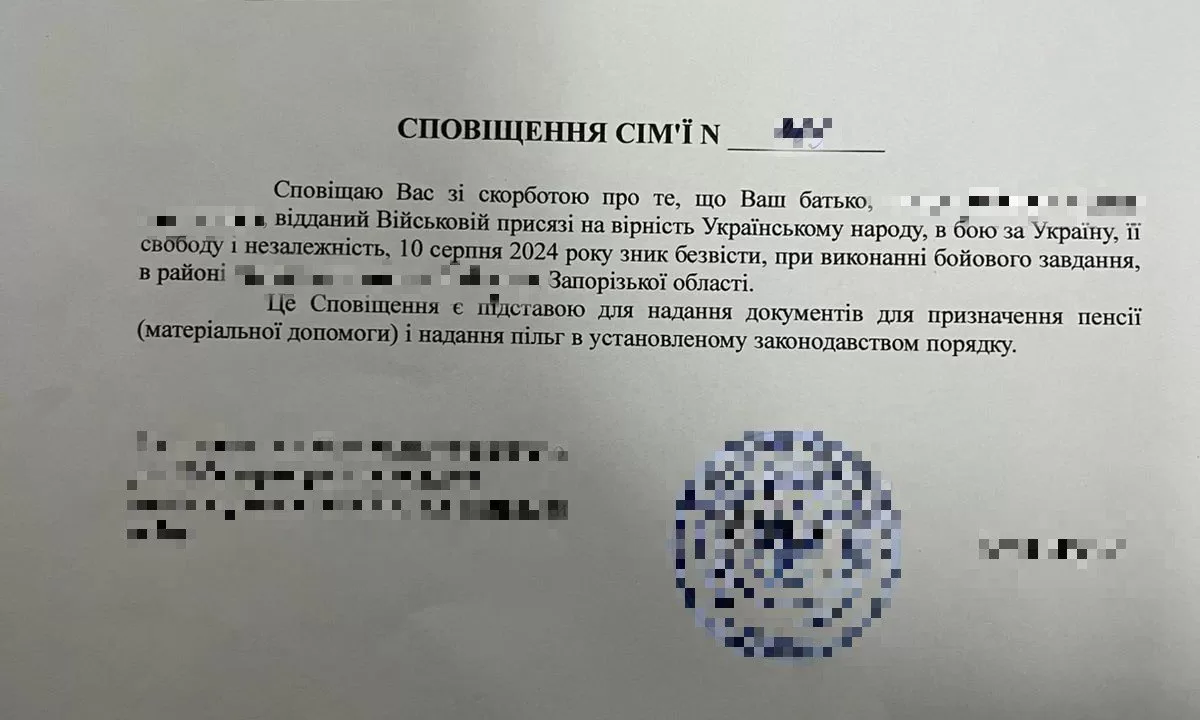 У пункті пропуску «Краківець» 23-річний мешканець Києва надав прикордонникам підроблене сповіщення про зникнення безвісти свого батька. У фальшивці йшлося, що чоловік нібито зник улітку 2024 року на Запорізькому напрямку.