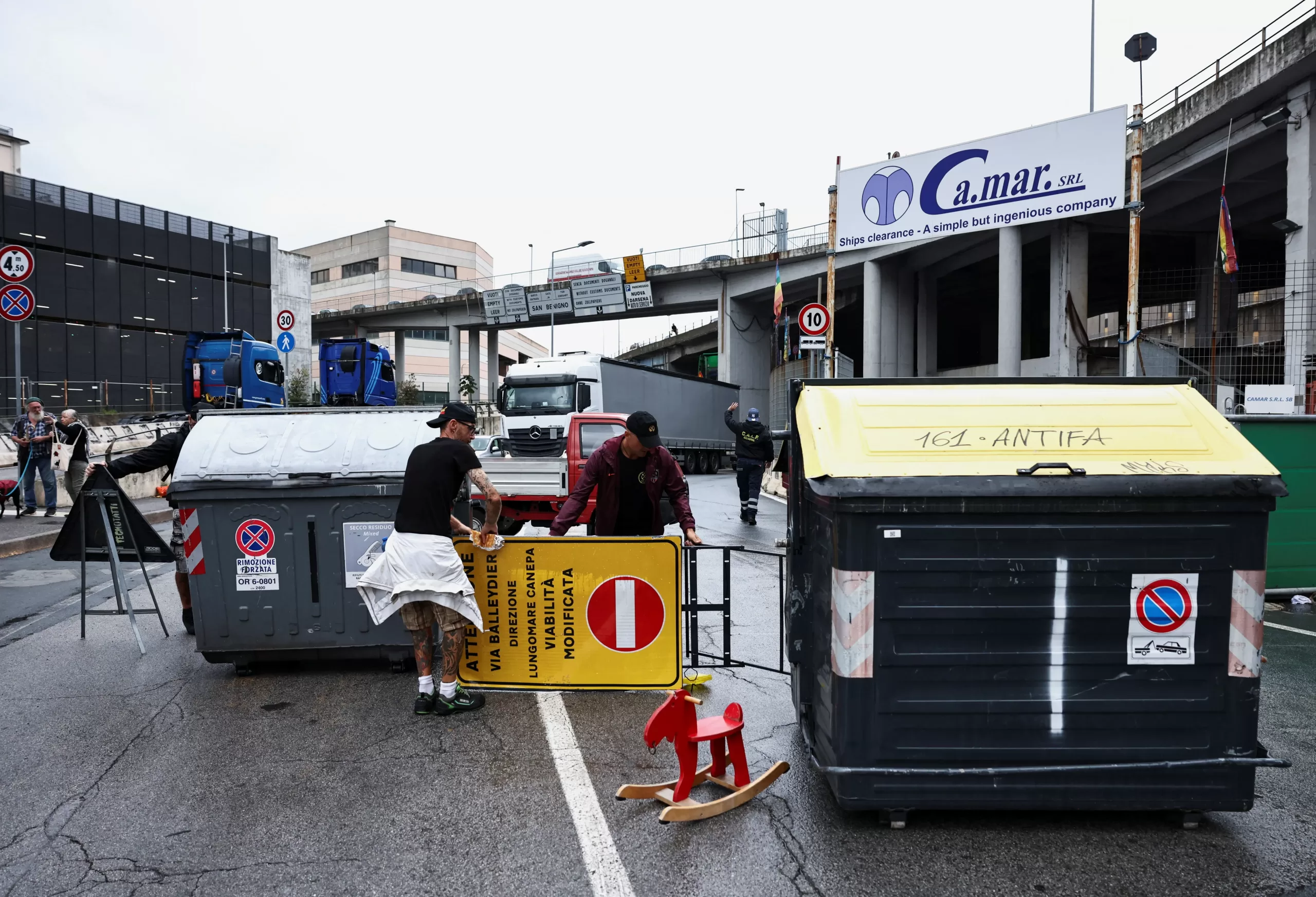 За даними Al Jazeera, 22 вересня відбулися блокування портів у Генуї, Трієсті й Ліворно. У Римі та Мілані протестувальники перекривали дороги, що спричинило масштабні затори та колапс громадського транспорту.