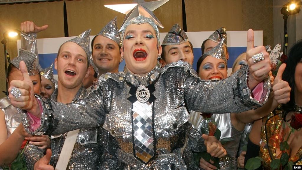 Вєрка Сердючка – сценічний псевдонім українського артиста Андрія Данилка. Його жартівливі пісні популярні у російської аудиторії. Данилко співає російською, але в пісні “Гулянка” цитується перший рядок українського національного гімну: “Льются песни, льются вина / И стучат бокалы в такт. / Ще не вмерла Україна, / Если мы гуляем так!”
