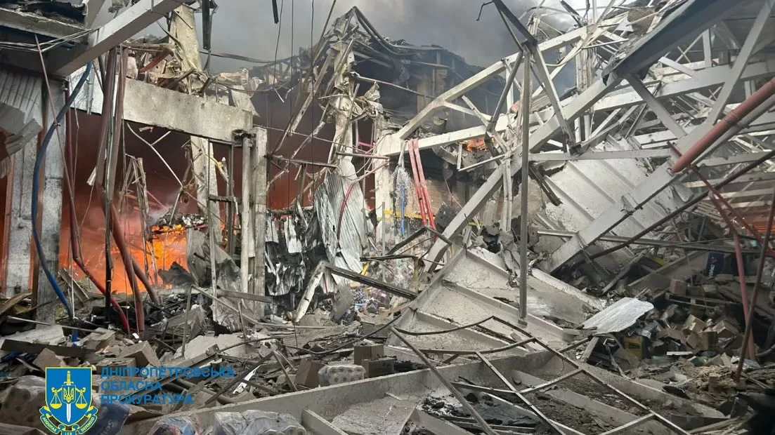 На місці удару виникла масштабна пожежа. Мер Дніпра Борис Філатов повідомив, що війська РФ завдали удару по складу з товарами гігієни.