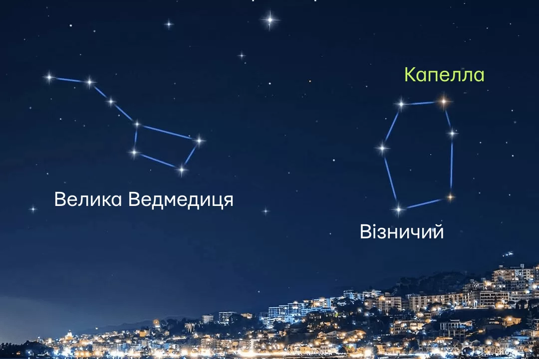 Щоб знайти Капеллу на небі, астрономи радять стати обличчям у напрямку північного сходу одразу після заходу Сонця та звернути увагу на яскраву жовту зорю високо над горизонтом. Один зі способів орієнтування — уявно провести лінію через дві крайні зорі “верхівки” сузір’я Великого Воза й продовжити її на схід.