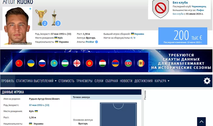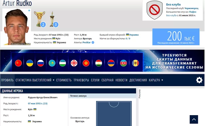 Ексворотаря «Динамо», «Шахтаря», «Чорноморця», «Металіста» та низки інших клубів Артура Рудька затримали під час спроби незаконного перетину державного кордону України.