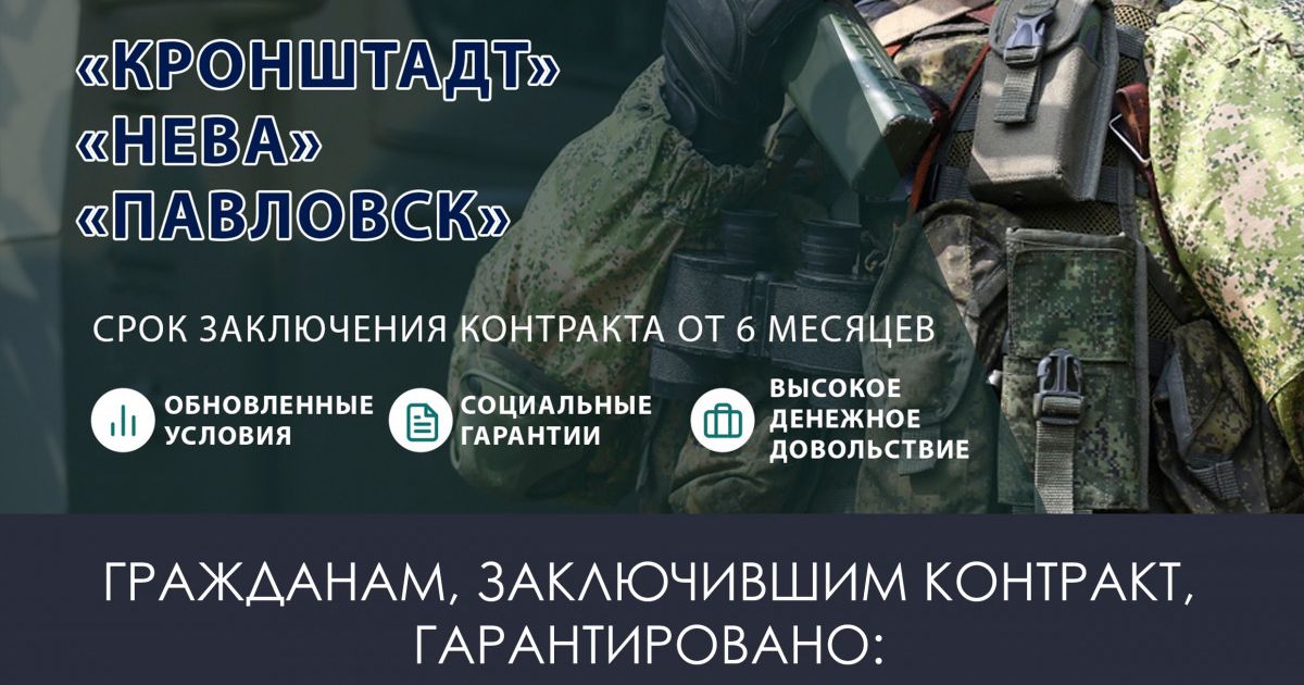 В оголошенні йдеться про те, що людей шукає військовий комісаріат Виборзького району, добровольці потрібні в іменні підрозділи «Кронштадт», «Нева» та «Павловськ».