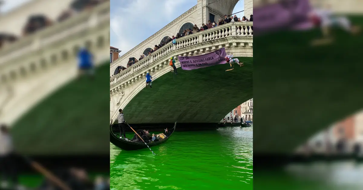 Кліматичні активісти руху Extinction Rebellion пофарбували води головної водної артерії Венеції Великого каналу (Гранд-каналу) в яскраво-зелений колір. Так вони висловили протест через відсутність прогресу на кліматичній конференції ООН COP28.