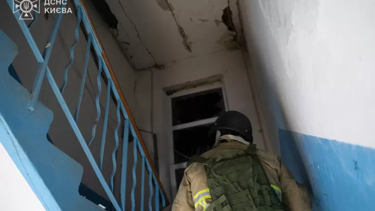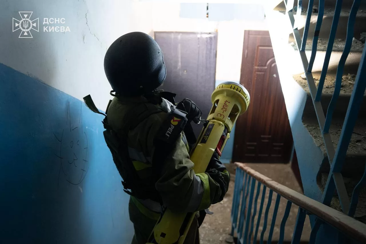 За даними ДСНС, у Подільському районі влучання припало на 15-й поверх багатоповерхівки, врятовано 13 людей. У Дніпровському ліквідовано пожежі у двох квартирах п’ятиповерхівки, врятовано 17 людей; на іншій адресі частково зруйновано 19-й і 21-й поверхи. Також горіли дерев’яні будівлі спортивної бази. У Дарницькому районі сталося займання на території школи. У Деснянському районі локалізовано пожежу на 7-му поверсі, врятовано 9 осіб і евакуйовано 50; на іншій адресі загинула одна людина, врятовано 14, одну деблоковано з-під завалів.