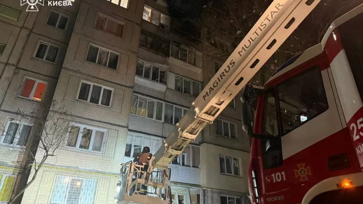 У Шевченківському районі зафіксовані займання на відкритій території та руйнування в адмінбудівлі. У Голосіївському – займання в медзакладі та пошкодження нежитлової будівлі. У Деснянському районі – загорання в кількох житлових багатоповерхівках. У Солом’янському районі горів дах п’ятиповерхівки. У Святошинському районі – займання в житловому та приватному будинках. Станом на ранок глава КМВА Тимур Ткаченко повідомив про 24 постраждалих і одну загиблу людину.