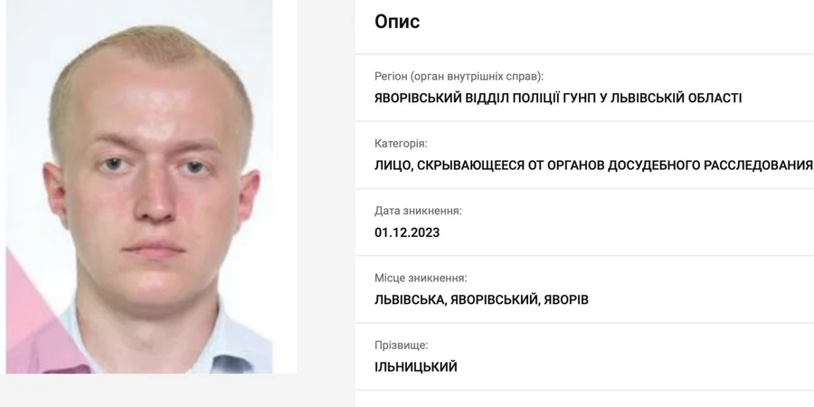 У МВС зазначили, що Ільницький зник 1 грудня 2023 року і переховується від органів досудового розслідування.