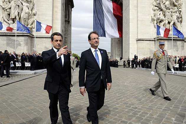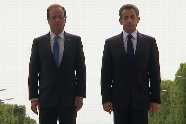 Избранный президент Франсуа Олланд и Николя Саркози, который готовится покинуть Елисейский дворец, приняли участие в традиционной церемонии возложения венков к Вечному огню под Триумфальной аркой в Париже в память о погибших во Второй мировой войне воинах, сообщили французские СМИ во вторник.