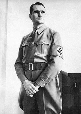 Рудольф Гесс, бывший заместитель Гитлера по нацистской партии, помещён в Тауэр в Лондоне. Находясь под воздействием геополитических теорий своего университетского преподавателя Карла Хаусхофера, Гесс полагал трагедией для немцев и англичан — «братьев-арийцев по крови» — вести войну друг против друга. Познакомившись в 1936 во время Олимпийских игр с членом королевской семьи лордом Дугласом Гамильтоном, Гесс намеревался через него быть принятым в английском парламенте, чтобы изложить там свои предложения. После тщательной подготовки, совершив предварительно несколько тренировочных полетов, 10 мая 1941 Гесс вылетел с аэродрома в Аугсбурге на Мессершмитт Bf.110 с запасом топлива в один конец. Гесс был одет в форму лейтенанта люфтваффе, имел при себе карту с намеченным маршрутом. Гесс намеревался посадить самолёт в Шотландии, неподалеку от поместья своего знакомого, лорда Гамильтона, однако, подлетев и не обнаружив подходящего места, выпрыгнул с парашютом и сдался в плен местным фермерам. Доставленный в Глазго, он поначалу назвался вымышленным именем, но затем признался, что он — Рудольф Гесс. Его весьма обескуражило то обстоятельство, что английские должностные лица долго не могли взять в толк, для чего совершен этот перелет и поначалу отказывались беседовать с ним. Один из чиновников министерства иностранных дел согласился выслушать предложения Гесса. Гесс заявил от имени Гитлера, что Германия хотела бы заключить с Великобританией мирный договор, прекратить боевые действия и направить совместные усилия на борьбу с большевистской Россией; Великобритании предоставлялась полная свобода действий в рамках Британской империи; колонии, которых лишилась Германия по условиям Версальского договора 1919, должны быть возвращены ей; английские войска должны были быть выведены из Ирака; британское правительство должно заключить мир с Муссолини. При этом Гесс заявил, что поскольку фюрер не намерен вести переговоры с Уинстоном Черчиллем, было бы предпочтительно, если бы Черчилль вышел в отставку. Черчилль распорядился, чтобы с Гессом обращались достойно: его отправили в Лондон, в Тауэр, где он пробыл как высокопоставленная интернированная персона до 6 октября 1945 года. Затем его перевели в тюрьму Нюрнберга. В 1945—1946 Гесс предстал перед Нюрнбергским процессом вторым в списке обвиняемых (после Геринга). Во время суда адвокаты заявляли о его невменяемости, хотя Гесс давал в целом нормальные показания. Был приговорён к пожизненному заключению (советский судья, заявивший особое мнение, настаивал на смертной казни). 17 октября 1946 ему (вместе с Ширахом и Шпеером) было поручено убирать спортзал, где были казнены подсудимые, приговоренные к повешению (перед началом уборки поднял руку в партийном приветствии). Отбывал пожизненный срок в Берлине в тюрьме Шпандау (после освобождения А. Шпеера в 1966 г. остался её единственным заключённым). Никогда ни в чём не раскаивался: его последнее слово на Нюрнбергском трибунале было: «Я ни о чём не сожалею». И через 30 лет в письме своему сыну он написал те же слова. До конца своих дней Гесс был предан Гитлеру.
