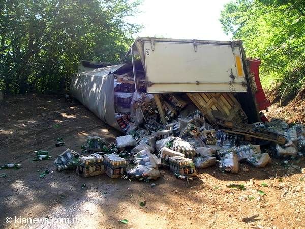 Курьезное ДТП в Крыму: перевернулась фура с пивом (+фото)