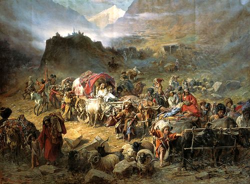 "Горцы оставляют аулы при приближении русских войск", П.Грузинский, 1872 год