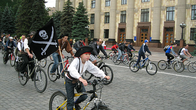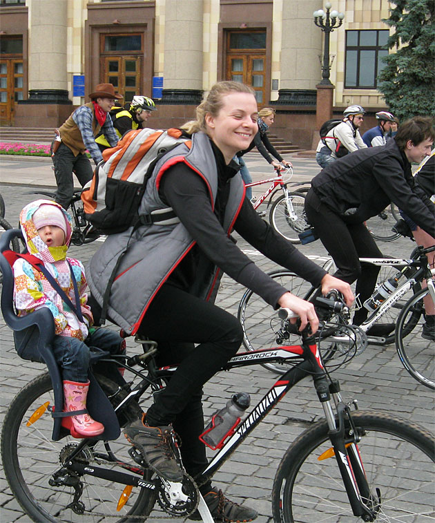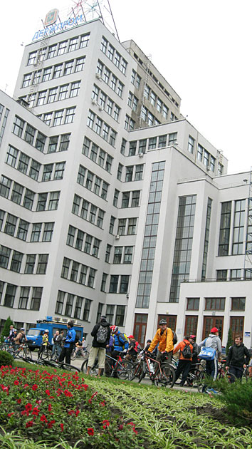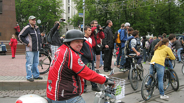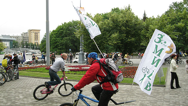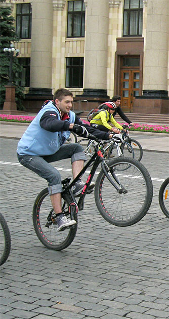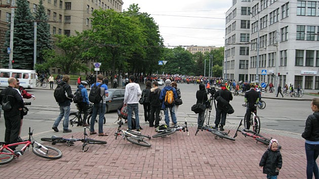 К 10 утра к Госпрому начали собираться организованные и не очень группы велосипедистов-аматоров.