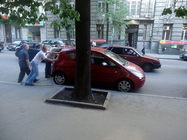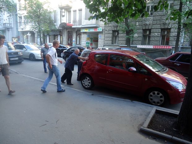 В результате прохожим пришлось оттолкнуть Mitsubishi и предоставить возможность автомобилям выбраться из узкой подворотни. При этом в Coltе сработала сигнализация, но водитель автомобиля так и не появился «на зов» собственного авто.