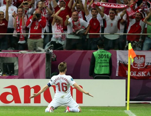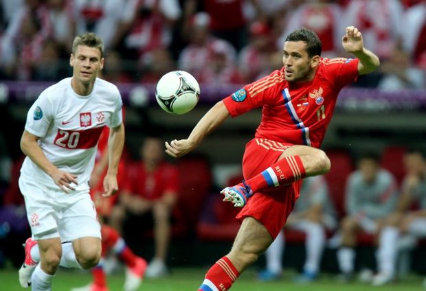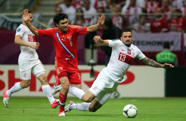 Моменты матча между сборными командами России и Польши. Варшава, 12 июня 2012 года. Счет 1:1.