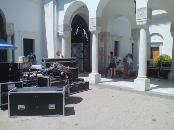 По информации "Центра", в итальянском дворике происходит монтаж сцены, а дворец-музей будет закрыт для свободного посещения до понедельника.