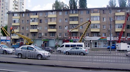 Как сообщает газета о личностях и лицидеях "Лица", дом №12 по проспекту им. Газеты «Правда» в Днепропетровске и его придомовую территорию в среду экстренно ремонтировали и облагораживали.