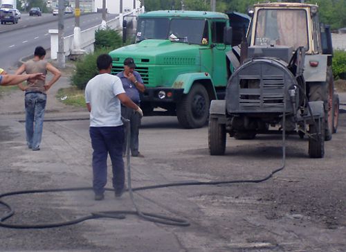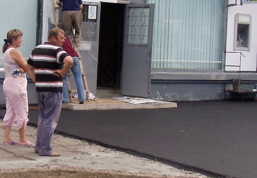 Толщина свежепостеленного на старую тротуарную плитку асфальта у «Ощадбанка» – сантиметров 12