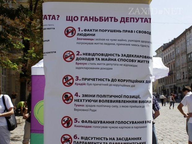 Як наголосили організатори акції, «стовп ганьби» встановили, щоб нагадати кандидатам в депутати про відповідальність перед виборцями.