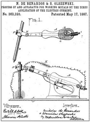 В 1885 году украинский изобретатель греческого происхождения Николай Бенардос подал заявку на привилегию на изобретённый им способ электрической дуговой сварки — способ «электрогефест».